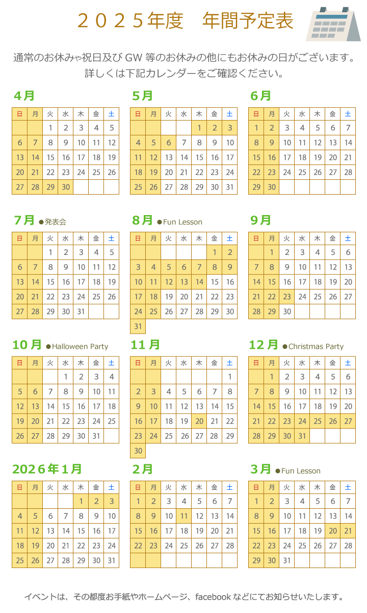 - 年間予定表 更新
